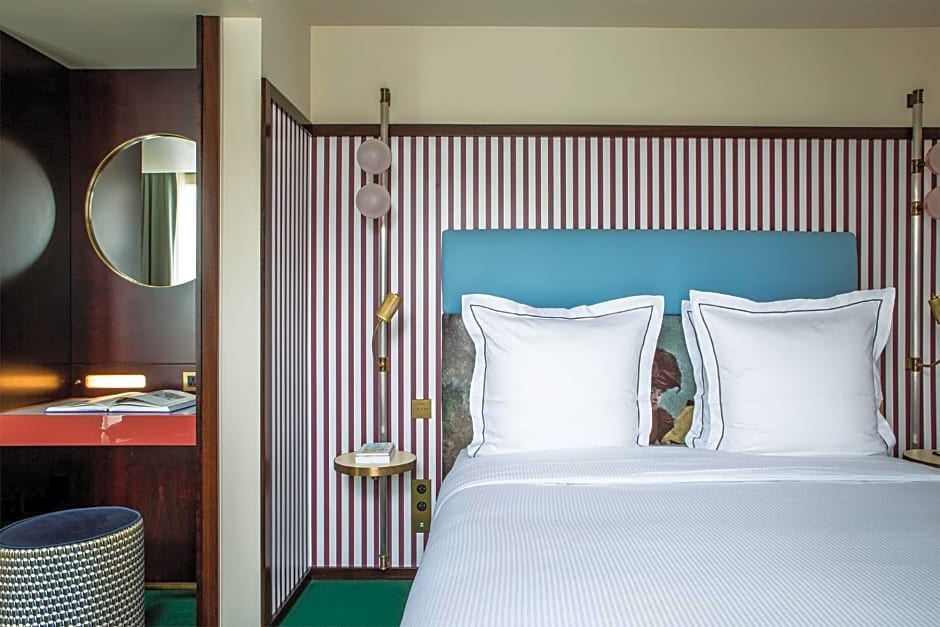 Located on the top floor of the hotel, this room offers a view of Paris from the private terrace. There is a queen-size bed and an Art Deco style bathroom.